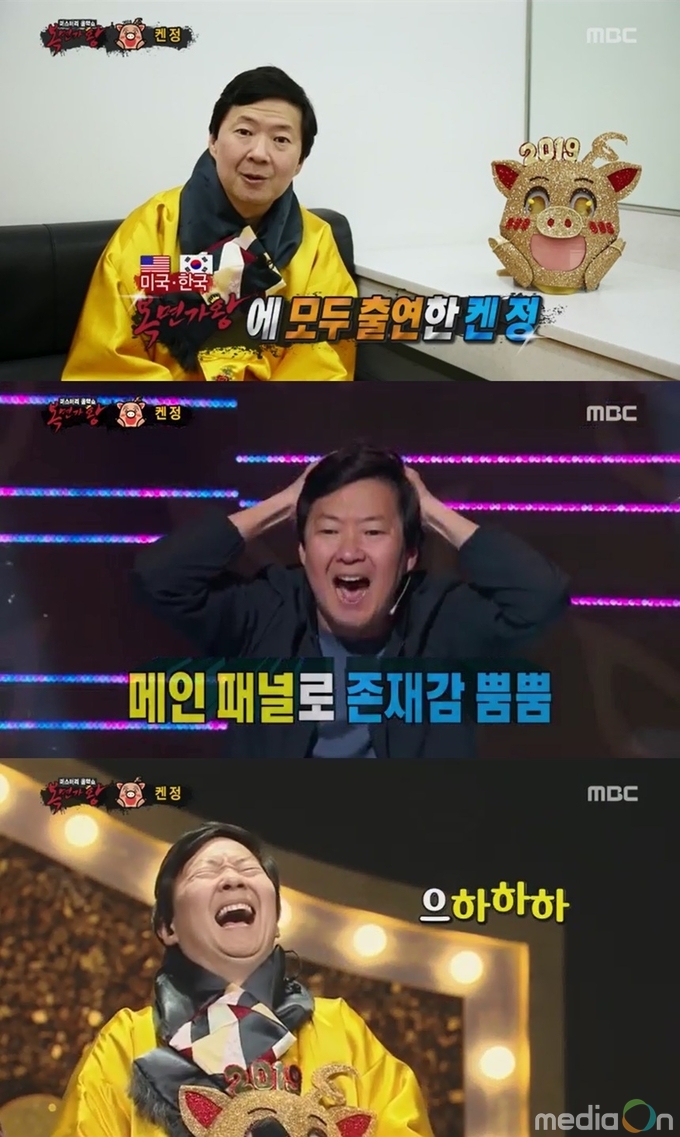 2주 전 살짝 공개된 무대 영상만으로 네티즌들 사이에서 잭 블랙, 크리스 프랫, ‘퀸’의 드러머 로저 테일러 등 여러 거물급 스타로 추측되며 화제성을 입증했던 ‘황금돼지’. 지난주 방송에서 범상치 않은 아우라와 현란한 무대매너를 뽐내며 Radio head의 ‘Creep’을 열창한 모습이 방영되며 큰 화제를 모았다. 미스터리한 정체에 판정단들 역시 좀처럼 수사망을 좁혀나가지 못한 가운데 ‘황금돼지’의 정체는 한국계 미국인 배우 켄 정이었다. 영화 ‘행 오버’, ‘크레이지 리치 아시안’, ‘트랜스포머3’ 등에서 주역으로 활약했던 의사 출신 코미디언 배우 ‘닥터 켄’ 켄 정의 모습에 스튜디오가 발칵 뒤집혔고 네티즌들 또한 ‘복면가왕 스케일 완전 글로벌 하네’, ‘켄정이 왜 거기서 나와?’, ‘미국판 복면가왕 패널이면 미국에서도 인기 많을 듯’, ‘헐 신기해’ 등의 반응을 보이며 놀라워했다. 또한 그는 얼굴을 공개하자마자 포털 사이트 실시간 검색어에 이름을 올리며 할리우드 스타의 명성을 입증하기도 했다.