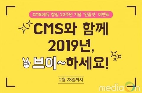 이번 이벤트는 2월 28일까지 CMS과 씨큐브코딩 홈페이지 이벤트 공지를 통해 응모할 수 있다. 인증샷은 CMS나 씨큐브코딩과 관련된 장소, 물건 등을 배경으로 ‘V’를 손가락 등으로 형상화해 찍어 개인 SNS에 전체공개로 올려야 한다. 이벤트 페이지에 게시물 링크와 22주년 축하 메시지를 입력하면 응모가 완료된다. 정상적인 참여자 선착순 220명에게는 커피 상품권을 제공한다.