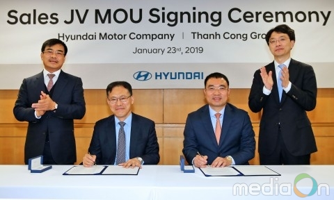 이번 업무 협약식은 지난 23일 양재동 현대자동차 본사에서 진행됐으며 김승진 현대차 사업관리본부장과 응우엔 뚜안 아잉 탄콩그룹 회장을 비롯해 양사 관계자들이 참석했다.