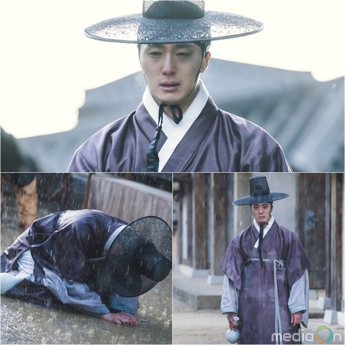 그런 가운데 공개된 스틸에서 정일우는 장대비를 온 몸으로 맞으며 도성을 거닐고 있다. 정일우는 한 손에 주병을 든 채 제 몸도 가누기 어려운 듯 보인다. 더욱이 정일우의 창백한 안색과 파리해진 입술은 그가 금방이라도 쓰러질 듯 위태로워 보여 보는 이들을 조마조마하게 만든다. 무엇보다 격하게 흔들리는 그의 눈빛 속에는 깊은 고뇌와 극심한 고통이 서려 있어 안타까움을 배가시킨다. 이어진 스틸 속 정일우는 끝내 바닥에 주저 앉아 울음을 토해내고 있다. 앞서 정일우는 이경영으로 인해 고아라, 권율, 이필모, 그리고 동생 노영학 사이에서 선택의 갈림길에 서게 된 바. 과연 이와 관련된 일인지, 정일우에게 어떤 일이 닥친 것인지 궁금증을 증폭시킨다.