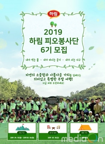 하림은 5월 6일까지 ‘피오봉사단 6기’를 모집한다고 지난 15일 밝혔다. ‘피오봉사단’은 하림 임직원과 소비자 가족들로 이뤄진 봉사단으로, 2014년에 처음 조직돼 올해로 6기를 맞는다. 공식 슬로건인 ‘내가 마시는 물, 내가 마시는 공기, 내가 사는 지구, 하림 피오봉사단이 만들어갑니다’를 앞세워 환경정화와 동물사랑을 실천하는 피오봉사단은 해마다 많은 소비자들의 참여로 높은 경쟁률을 보였다.