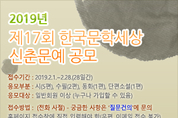 한국문학세상은 디지털 문학을 창의적으로 발전시켜 나갈 수 있는 능력있고 참신한 유망주 발굴을 위하여 ‘제17회 한국문학세상 신춘문예’를 2019년 2월 28일까지 접수한다고 지난 18일 밝혔다. 응모 방법은 한국문학세상 홈페이지 ‘공모전 투명심사 시스템’에 직접 입력해야 한다. 방문이나 우편 또는 이메일 접수는 받지 않는다. 국내 최초로 종이 없는 심사를 하기 위해서다. 한국문학세상은 이 대회의 심사 방식이 비밀코드에 의해 온라인으로 심사를 하기 때문에 어느 심사위원이 어떤 작품을, 어떻게 심사하는지 알 수 없도록 암호화 된 세계 최고의 투명심사 방식이라고 밝혔다. 한국문학세상의 등단제도는 등단 이후에도 체계적인 문학지도를 실시해 문학지도자로 양성하는 프로그램을 운영하고 있어 타 문인단체와 차별화된 등단제도로 알려져 왔다. 심사결과는 3월 30일 홈페이지와 인터넷 뉴스 등에 발표한다. ‘한국문학세상 신춘문예’는 17년간 이어져 왔던 ‘설중매문학 신춘문예’를 2019년부터 명칭 변경하여 시행하게 되었다. 당선작은 종합문예지 ‘계간 한국문학세상’ 2019년 봄호에 발표하며 당선자에게는 당선증을 수여한다. 개인 저서를 출간할 경우 저렴하게