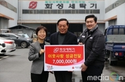 화성세탁기는 지난 7일 오전 화성세탁기 앞 에서 고창오 화성세탁기 회장, 이희정 대구사회복지공동모금회 사무처장 및 관계자들이 참석한 가운데 이웃사랑성금 700만원을 대구사회복지공동모금회에 전달했다. 1980년에 설립된 화성세탁기는 국내 최대규모의 산업, 공업, 상업, 업소용 세탁장비전문업체로 2011년부터 자체 생산하는 세탁기 및 건조기를 기부하기 시작, 현재까지 세탁기 및 건조기 23대를 기부해 기부총액은 3억5000여만원에 이른다. 특히 이번에는 우리 주위의 소외된 이웃들을 위한 성금 700만원을 기탁해 더 큰 의미를 더했다. 고창오 화성세탁기 회장은 “전달된 성금이 우리주위의 소외된 이웃들이 꿈과 희망을 갖고 더 나은 대구가 되는 데 보탬이 되길 바란다”며 “앞으로도 지속적인 나눔을 실천하여 더불어 사는 사회가 되도록 노력하겠다”고 나눔 메시지를 밝혔다.