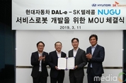 현대자동차와 SK텔레콤이 고객 응대용 서비스 로봇 개발에 박차를 가한다. 현대자동차와 SK텔레콤은 지난 11일 경기도 화성시 소재 현대자동차 남양연구소에서 ‘서비스 로봇 개발을 위한 양사의 인공지능 플랫폼 간 상호 협력 MOU’를 체결했다고 밝혔다. 이 날 체결식은 현대자동차 조성환 연구개발본부 부본부장, 현동진 로보틱스팀 팀장과 SK텔레콤 김윤 AI센터장, 유웅환 SV 이노베이션 센터장 등 현대차와 SK텔레콤 관계자가 참석한 가운데 진행됐다. 현대차와 SK텔레콤은 이번 협약을 통해 현대자동차 전시장에 시범적으로 배치될 고객 응대용 서비스 로봇을 공동으로 개발하기 위해 다방면의 노력을 함께 이어가기로 약속했다. 현대자동차의 서비스 로봇은 직원을 보조해 전시장에서 고객을 응대하는 역할을 수행하게 될 예정이며, 현대차는 SK텔레콤과의 협업을 통해 로봇의 서비스 영역을 확장하고 연내 시범 운영한다는 계획이다. 현대자동차의 로봇 인공지능 플랫폼 ‘달이’와 SK텔레콤의 인공지능 플랫폼 ‘누구’가 결합해 개발될 서비스 로봇은 고객들과의 음성 대화를 기반으로 고객 맞이, 차량 설명 등의 기능을 갖춘 것은 물론 음악이나 날씨 등과 같은 다양한 서비스
