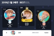 1월 5주차 베스트아이돌 투표 결과 강다니엘이 지칠 줄 모르는 기세로 51주 연속 베스트아이돌로 선정되었다. 이번 주 강다니엘의 1위는 전주 대비 안정적으로 유지되었으며 한 치의 흔들림 없이 베스트아이돌의 자리를 지키고 있다. 이번 주 미야와키 사쿠라의 화력이 이목을 끌었는데 전주 대비 2계단 오르면서 워너원의 배진영이 8위, 박우진이 전주 대비 한 계단 올랐으나 9위에 머무르게 되었고 미야와키 사쿠라가 7위에 안착하여 역대 전체 랭킹 중 최고 기록을 세웠다. 이로써 미야와키 사쿠라는 16주 연속 여자 아이돌 1위를 차지하게 되었다. 2위는 전 주 대비 2계단 더 오른 안유진이 차지하며 그 뒤를 이었고 3위는 혼다 히토미, 4위는 전체 랭킹 5계단이나 오른 트와이스의 쯔위가 차지했다. 전체 랭킹에서 다소 약세를 보인 조유리, 장원영이 각 5계단, 6계단씩 내려와 5위 6위에 안착, 7위에는 아이린이 처음으로 여성 아이돌 TOP10에 진입했다. 8위에는 아이유, 9위에는 트와이스 나연이 전체랭킹 10계단이나 오르며 무서운 기세로 안착하여 화력이 기대되고 있으며 공동 9위로 권은비, 야부키나코가 차지하면서 TOP10이 마감되었다. 남자 아이